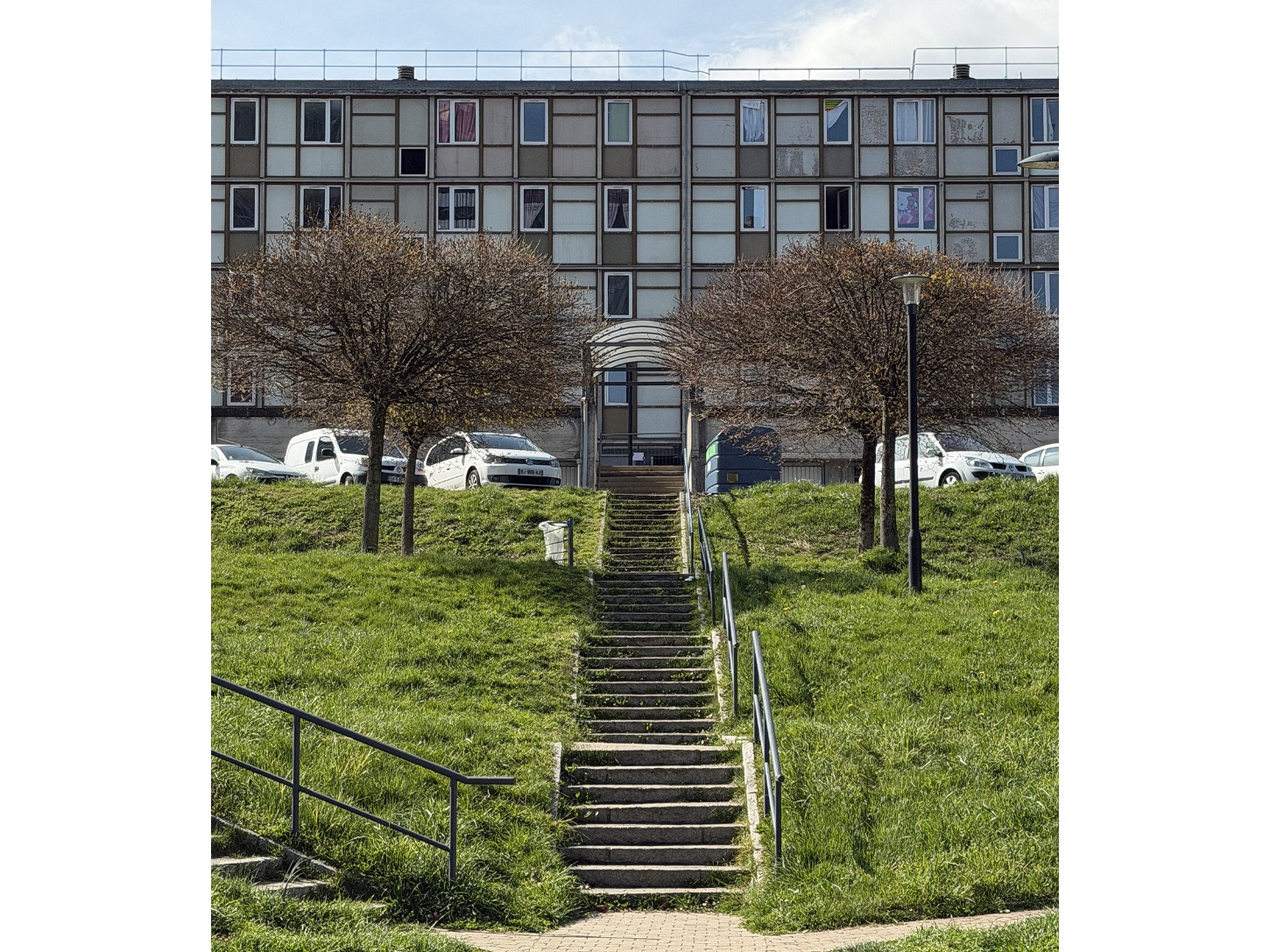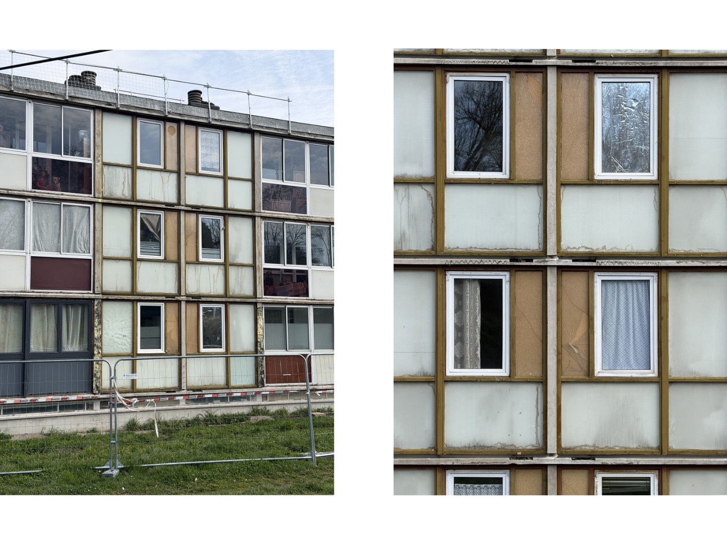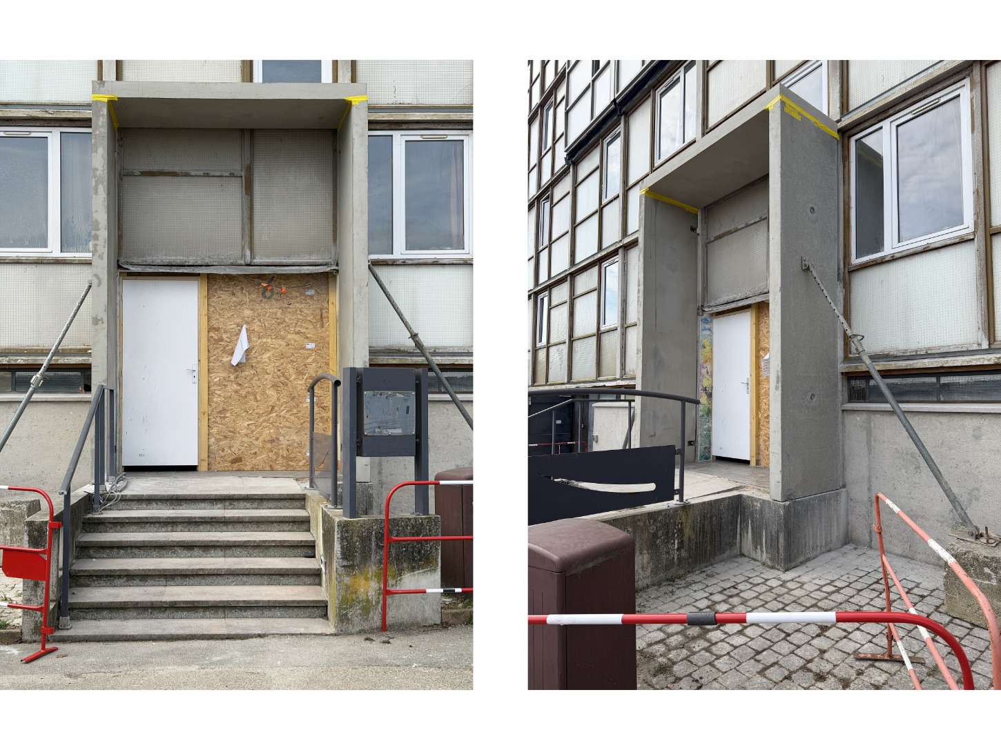 Visite du début du chantier de réhabilitation du bâtiment Peuplier avec un prototype pour le nouveau dessin des entrées nord.