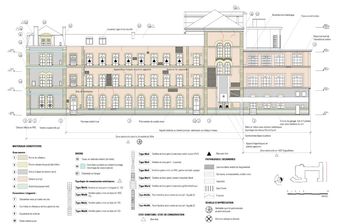 L’étude est constituée : – d’une part d’un diagnostic patrimonial et sanitaire, permettant ainsi une appréciation de valeurs sur l’ensemble du site. L’analyse détaillée intéressait, quant à elle, majoritairement la cité scolaire et les bâtiments annexes étaient simplement évoqués, – d’autre part d’un cahier de préconisations destiné à accompagner les éventuels travaux futurs.