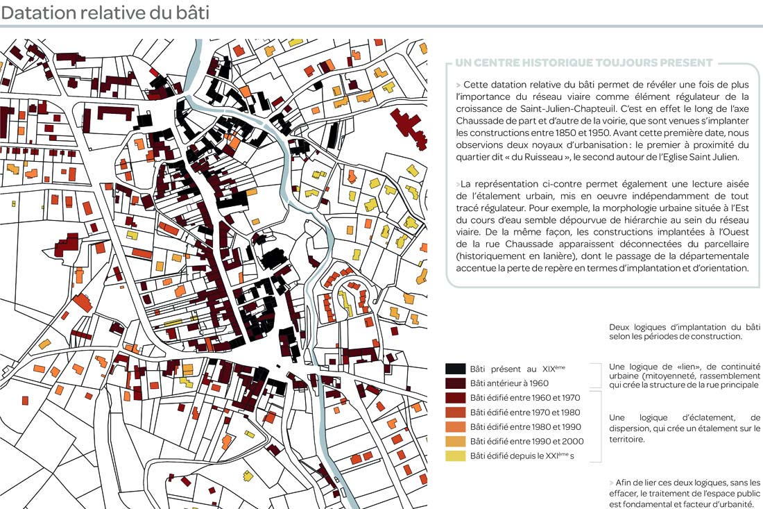 XIe siècle par un groupe de moines bénédictins que les seigneurs de Chapteuil avaient fait venir de la Chaise-Dieu. Cette église romane est aujourd’hui classée monument historique. En 1733, Jean Pierre de Surrel (1686-1756) fit l’acquisition du fief de Saint-Julien, qui restera en possession de la famille de Surrel de Saint-Julien jusqu’à la Révolution française. La commune fut créée entre 1790 et 1794 par la fusion des communes éphémères de Saint-Julien et Chapteuil. L’objectif de la mission confiée à notre équipe est de définir un projet global, stratégique et concerté de revitalisation de la commune de Saint-Julien-Chapteuil, décliné en programme opérationnel permettant de maintenir voire de conforter les fonctions de son centre-bourg, le tissu économique local et de renforcer son attractivité résidentielle par rapport au reste de la commune.