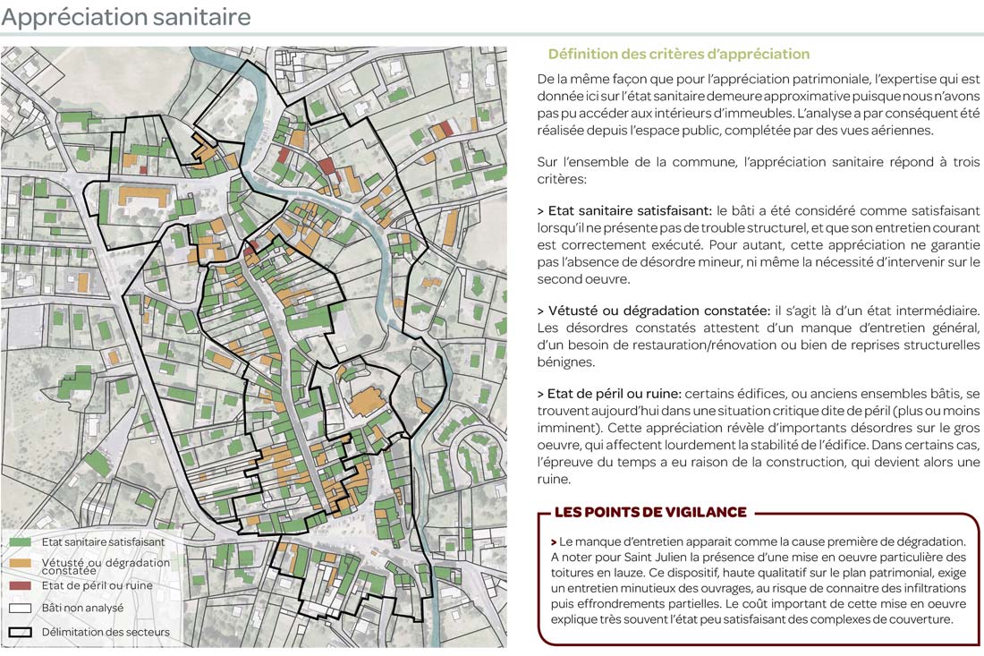 Cette appréciation, nécessairement de terrain, conduit à la visite d’un maximum d’édifices afin d’évaluer également l’état sanitaire du bâti. Une expertise qui est souvent l’occasion de signaler les constructions en état de péril.