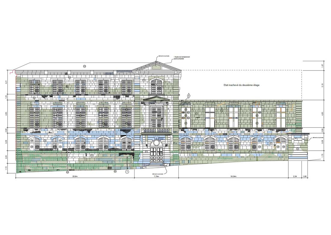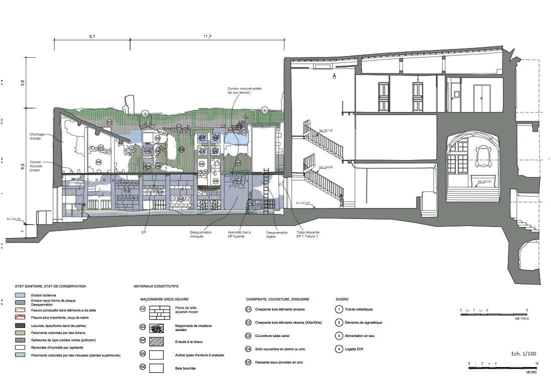 La commune se questionnant sur le devenir du site, notre mission continua avec exercice de programmation et de faisabilité (architecturale et économique) qui permit à la ville d’avoir en main les cartes nécessaires pour démarcher des porteurs de projet en vue de la requalification de leur patrimoine. Au regard des désordres, mais aussi des enjeux patrimoniaux de conservation, l’agence entreprit en parallèle une mission de mise en sécurité de l’édifice avec des travaux d’urgence.