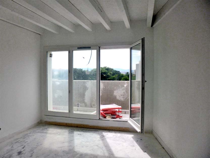 L’accent a été mis sur la conception exceptionnelle de quinze portes-fenêtres préfabriquées en béton et verre, dans l’esprit de Le Corbusier.