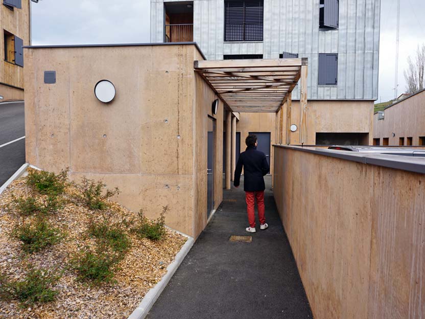La visite du site aménagé et d’un des huit logements à Chazay d’Azergues a eu lieu dans le cadre d’une formation à la construction bois pour les élus et services techniques des collectivités du Beaujolais. Les atouts de l’usage du bois ont pu être développés, comme matériau, mode de construction et source d’économie locale.