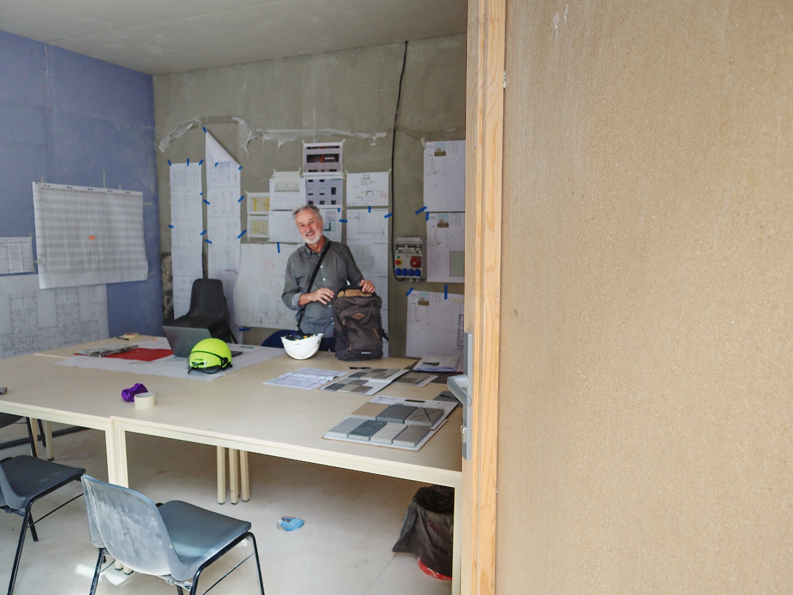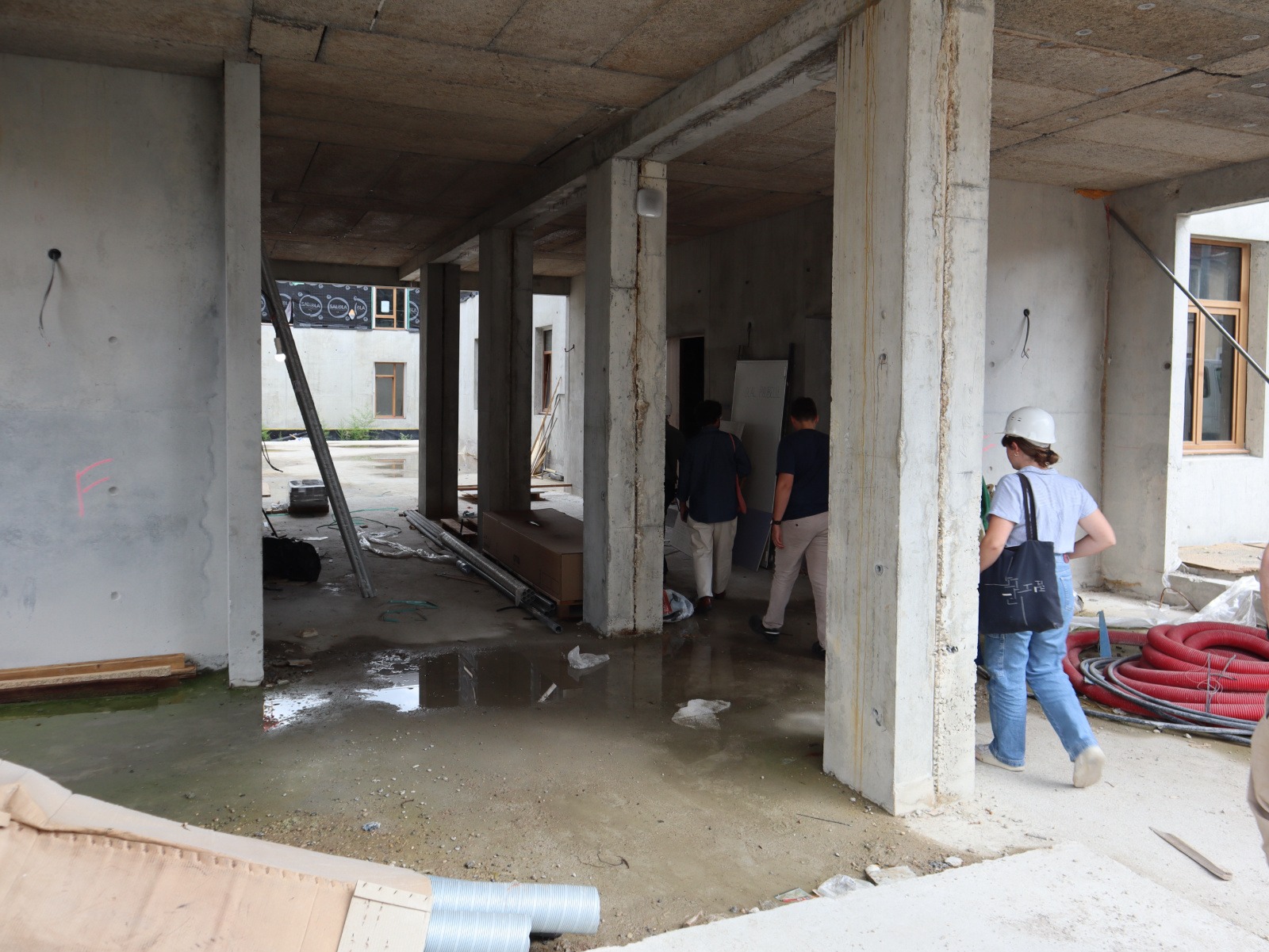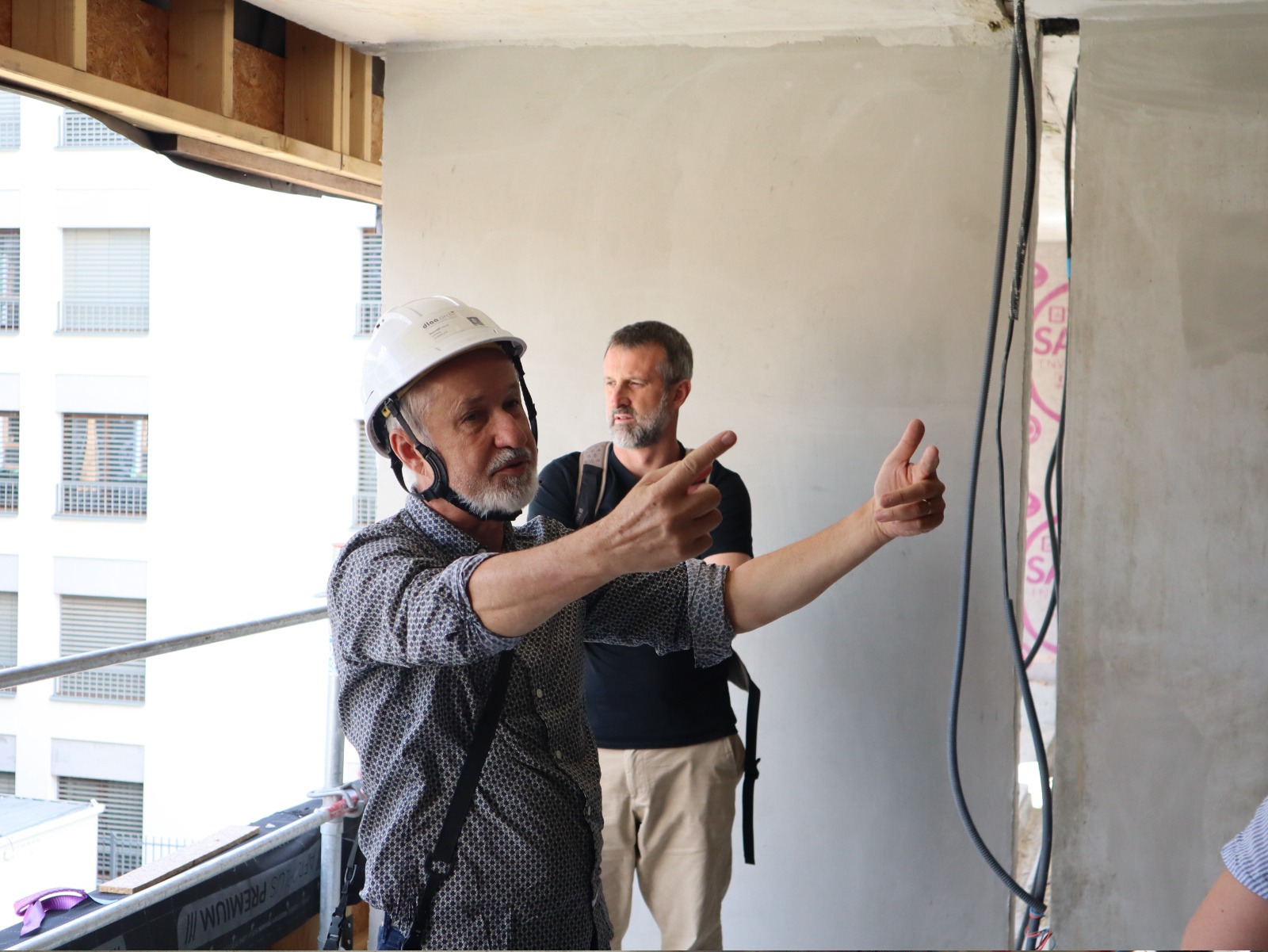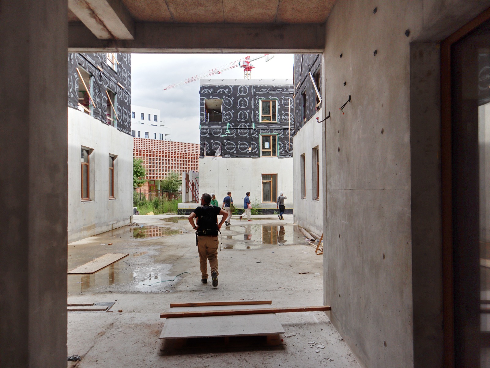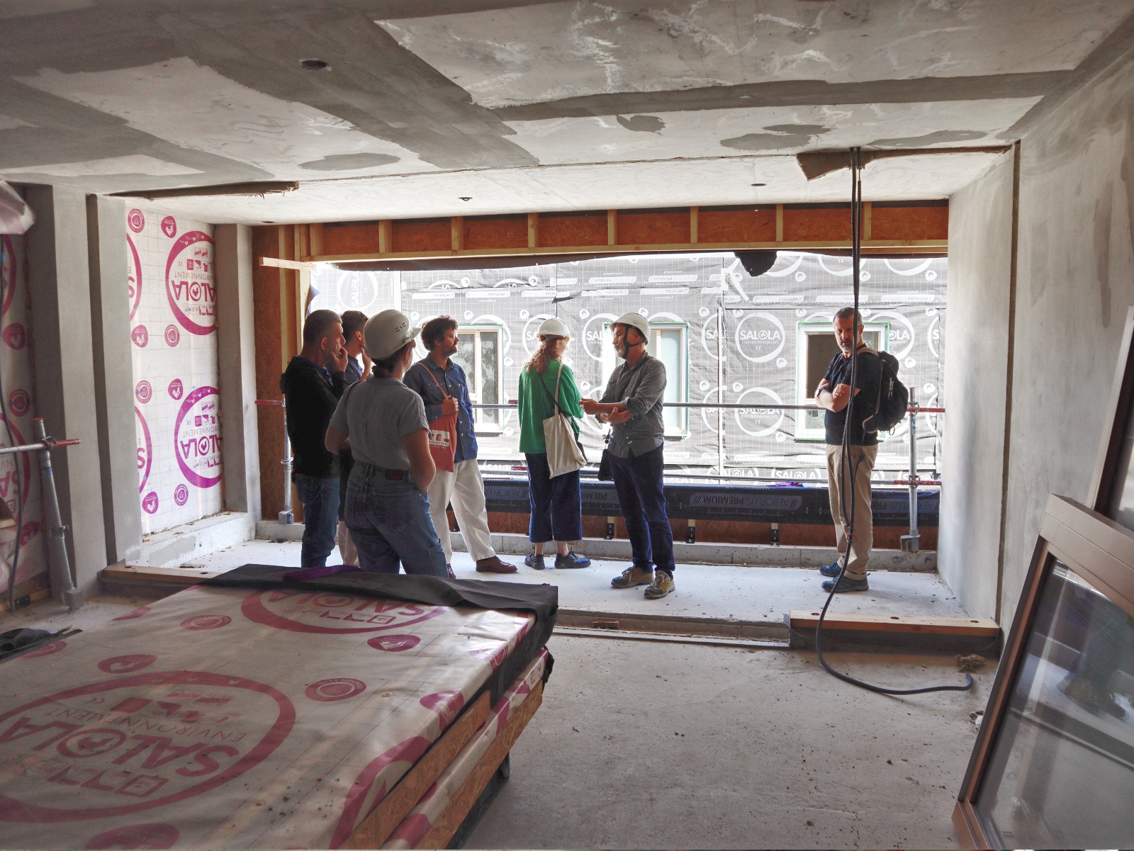 La construction avance, Pierre Levy fait visiter à l’équipe de l’atelier DLAA.